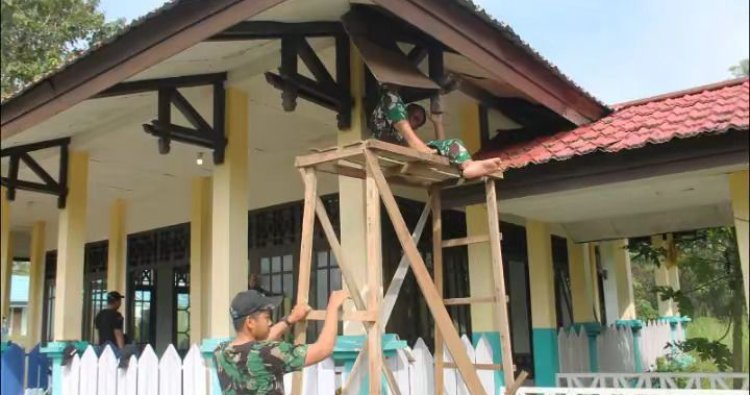 Nanga Badau, Kalimantan Barat - Dalam rangka mendukung kegiatan teritorial di wilayah perbatasan nasional, Satgas Pamtas Yonkav 3/AC melaksanakan renovasi Mushola At-Taqwa yang berada di wilayah Kecamatan Badau, Kabupaten Kapuas Hulu.